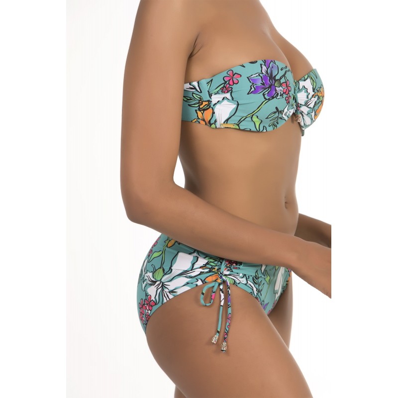 Top de bikini bandeau con aro y copa. Con tirantes extraíbles y escote fruncido. Un diseño veraniego con estampado floral. De color verde.