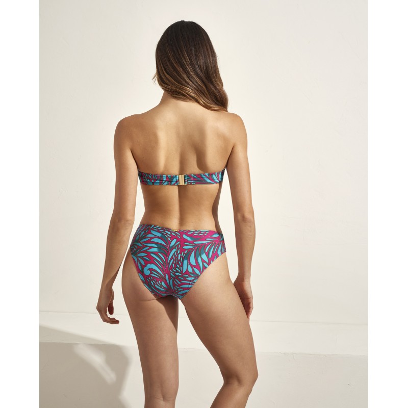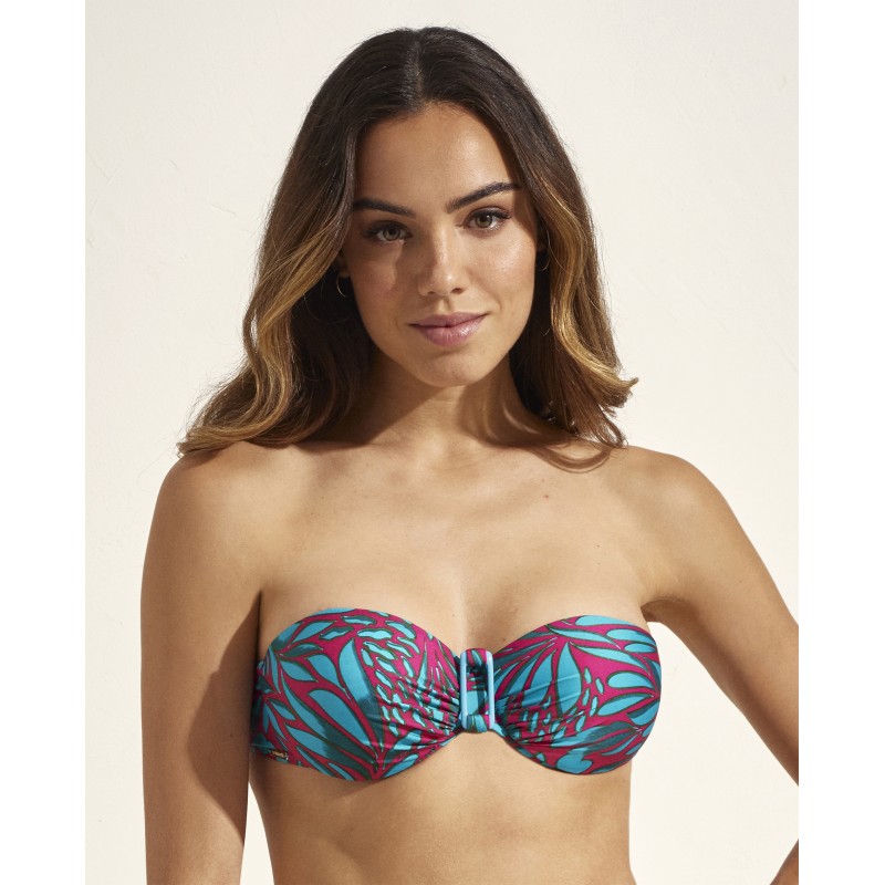 Top de bikini bandeau con aro y copa. Con tirantes extraíbles. Déjate llevar por la frescura de sus tonos alegres y prepárate para brillar este verano.