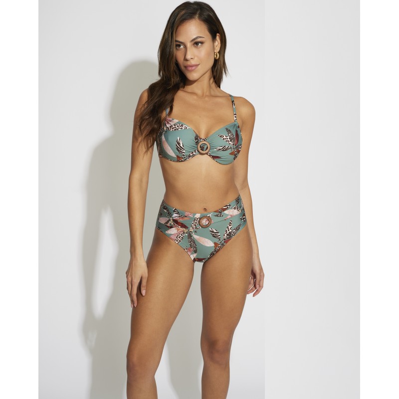 Top de bikini de capacidad, sin relleno. Con aro y tirantes dobles coordinados para una sujeción perfecta. Su estampado selvático transmite una sensación de frescura, alegría y exotismo. Es una pieza perfecto para lucir un estilo salvaje y tropical en la playa o la piscina.