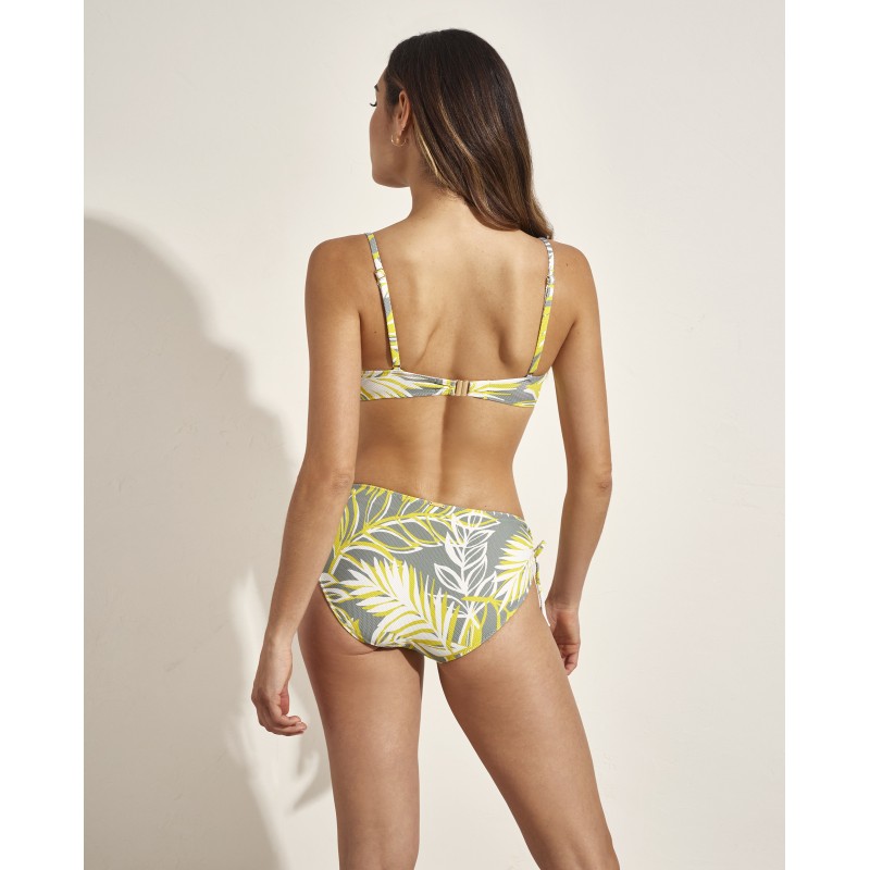 Top de bikini de capacidad sin foam. Con aro y tirantes ajustables para garantizar una sujeción perfecta. Con un diseño vivaz que captura la esencia del verano gracias a las hojas de su estampado que resaltan la belleza de la naturaleza tropical.
