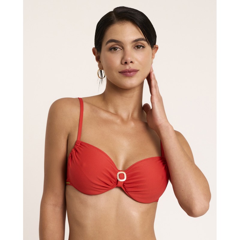 Top de bikini de capacidad sin foam. Con aro y tirantes ajustables para garantizar una sujeción perfecta. Su tono uniforme y estilo atemporal lo hacen ideal para lucir esta temporada.