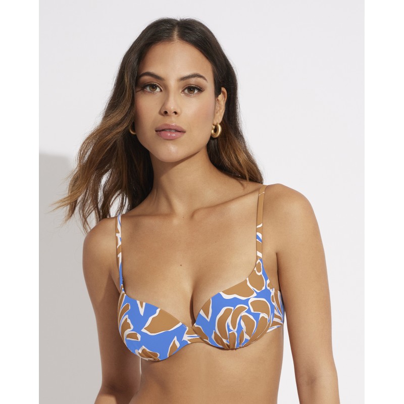 Top de bikini con aro y copa de foam. Un diseño clásico con tirantes que aporta una sujeción perfecta y la máxima comodidad. Este diseño fresco y natural evoca la sensación de estar en un entorno tropical y en contacto con la naturaleza. Es perfecto para lucir estas vacaciones.