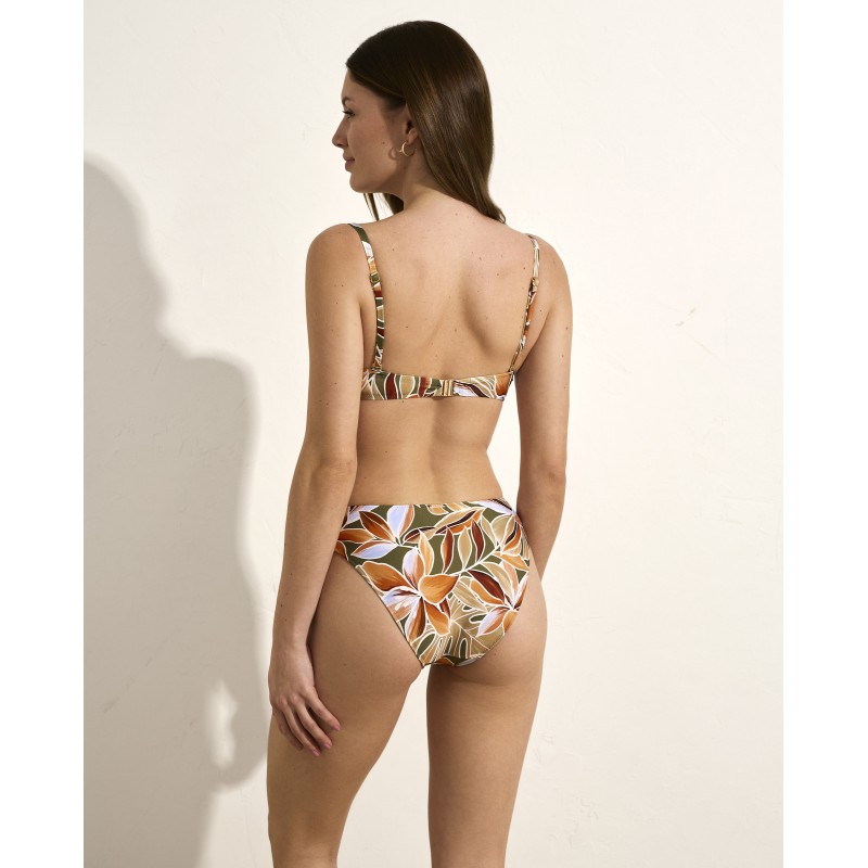 Top de bikini con aro y copa de foam. Aporta una sujeción perfecta y la máxima comodidad. Deja que este estampado floral te acompañe en tus mejores momentos bajo el sol este verano.