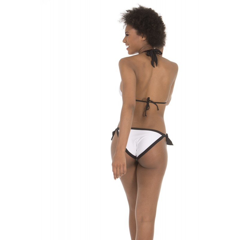 Top de bikini de cortina multiposición. Con copa extraíble y cinco posiciones posibles. Elegante y sencillo. Con vivos con borde en contraste. De color blanco.