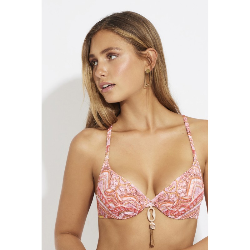 Top de bikini push up con aro. Con su diseño étnico en colores vivos, esta pieza te hará brillar este verano.