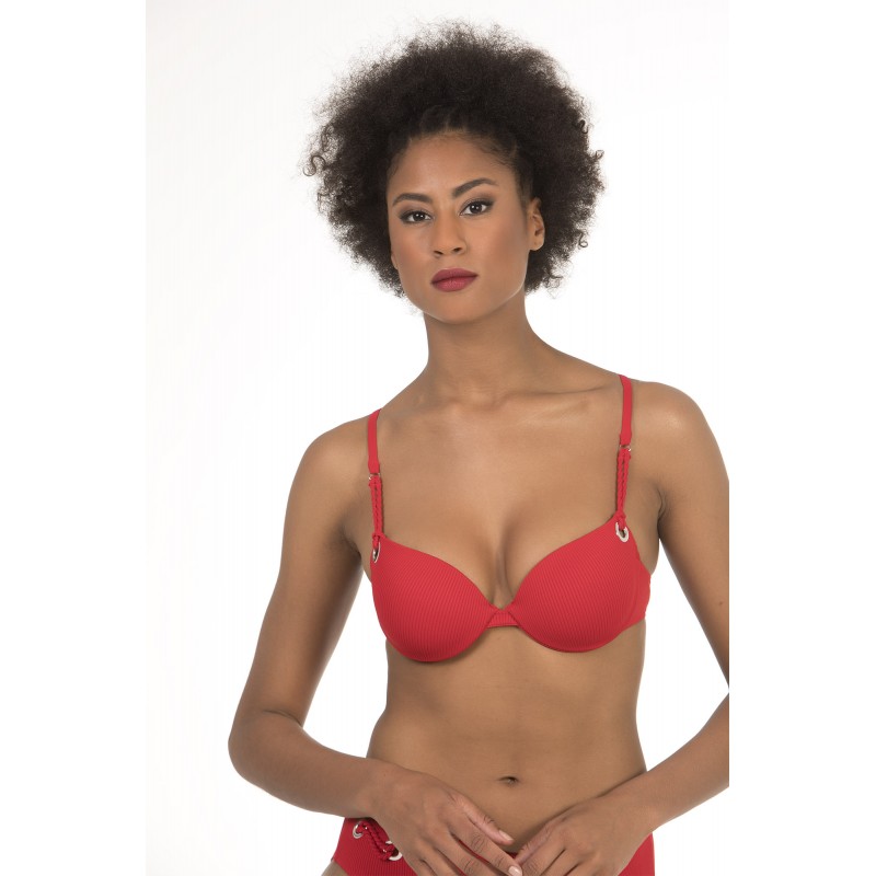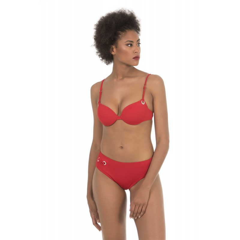 Top de bikini semibalconette con aro. Un diseño sencillo y atemporal. De color rojo.