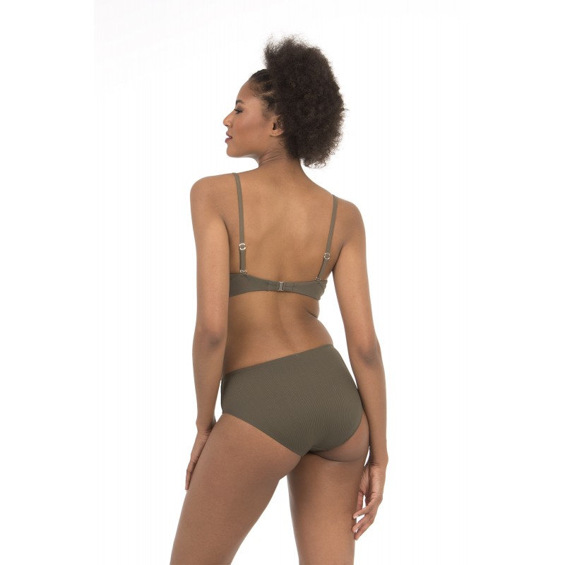 Top de bikini con aro y sin relleno. Un diseño sencillo y atemporal. De color verde kaki.