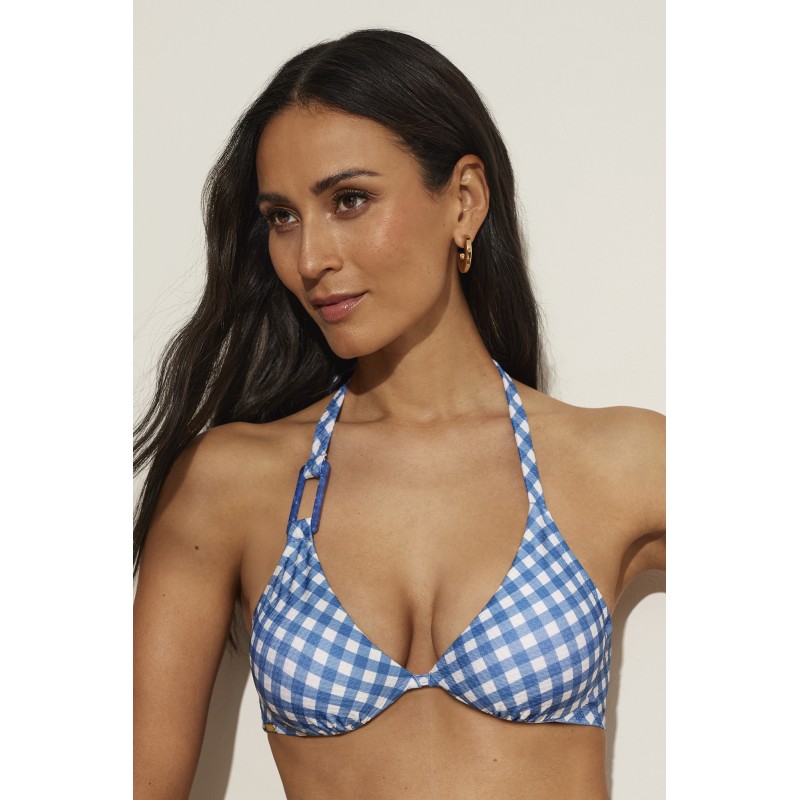 Top de bikini efecto reductor. Con aro y sin relleno. Contiene y reduce visiblemente el pecho. Con un estampado muy estético y juvenil que realzará tu figura. Una pieza perfecta para este verano.