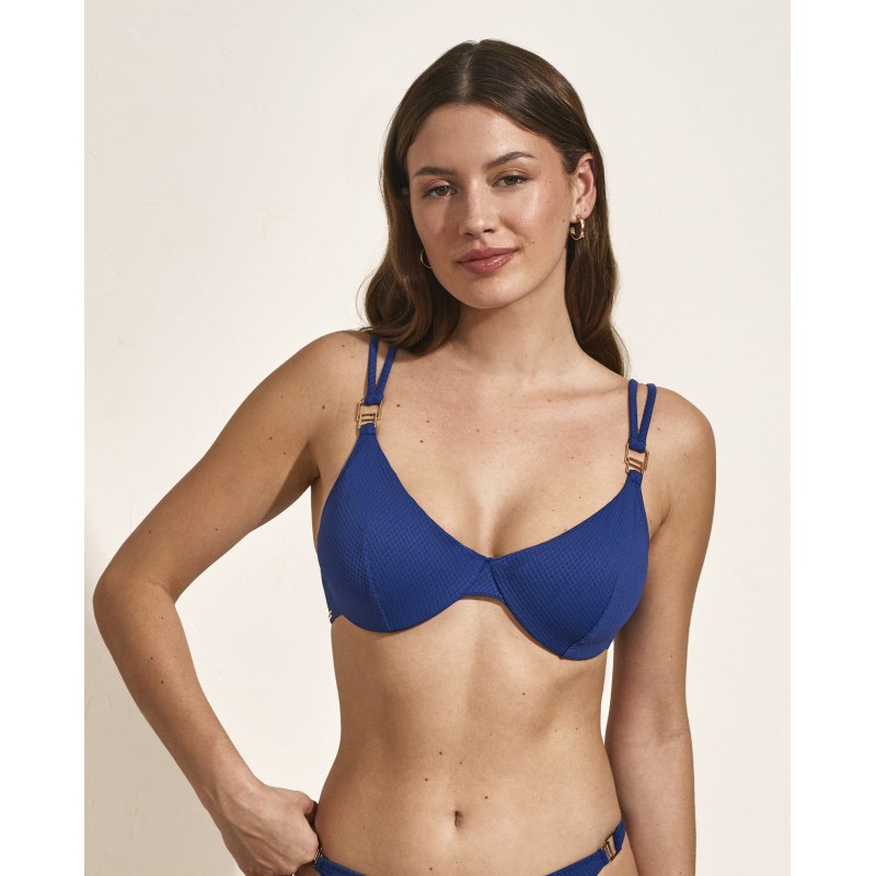 Top de bikini con escote triangular con aro y sin foam. Su ajuste cómodo y seguro permite disfrutar de actividades acuáticas sin preocupaciones, ya sea en la playa o en la piscina.Sin duda, es una opción clásica, práctica y elegante para el verano, ideal para lucir bien mientras te diviertes bajo el sol.
