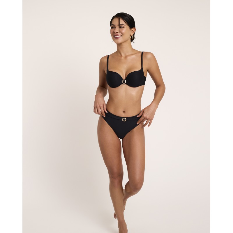 Top de bikini moldeador con aro y copa de foam. Aporta una sujeción perfecta y la máxima comodidad. Su tono uniforme y estilo atemporal lo hacen ideal para lucir esta temporada.