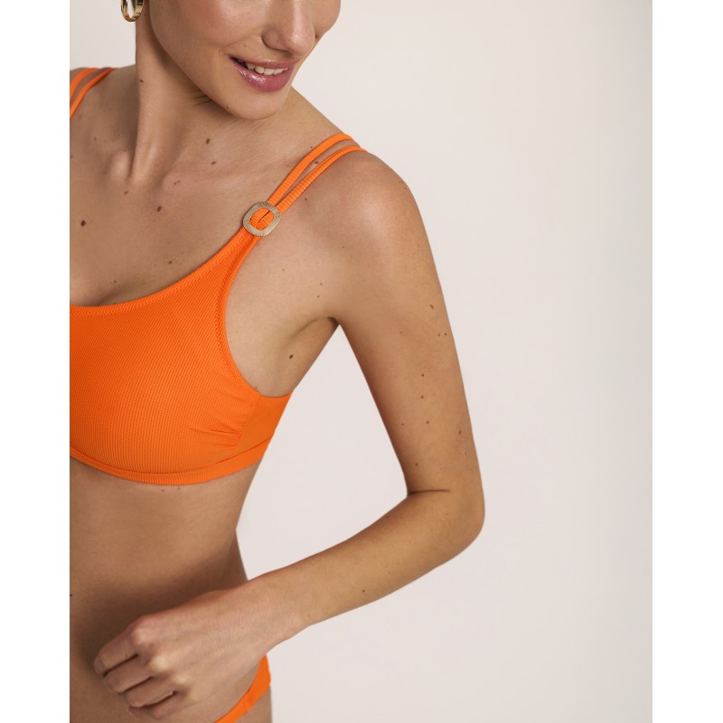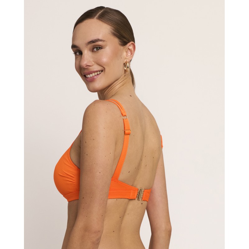 Top de bikini protésico con escote en pico. Sin aro y con bolsillo protésico interno. Diseñado para mujeres que deben añadir una prótesis después de una cirugía de mastectomía o tumorectomía. De cuello elevado y tirantes amplios para garantizar una máxima comodidad. Su ajuste cómodo y firme permite disfrutar de actividades acuáticas sin inquietudes.