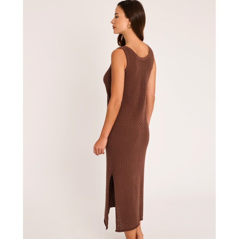 Vestido largo de punto. Un diseño clásico y atemporal con apertura lateral que aporta comodidad y frescura en los días de verano.