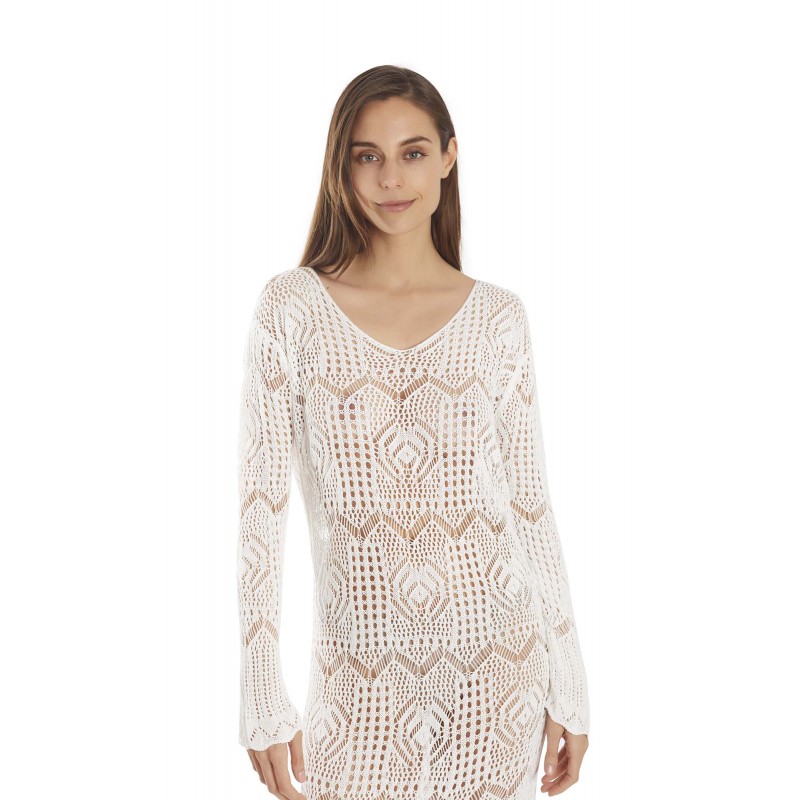 Vestido de ganchillo con mangas. Ideal para poner sobre tu bikini o bañador favorito.