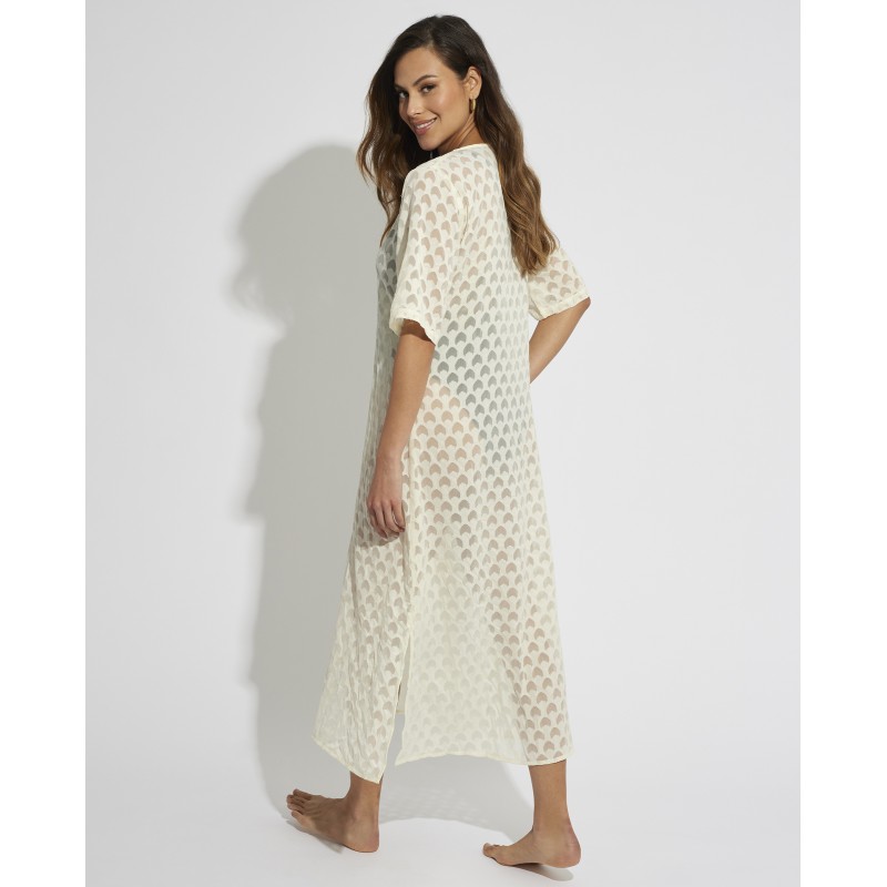 Vestido estilo kimono de ganchillo con corte lateral muy fresco. Su diseño sencillo y color puro le dan un toque sofisticado y seductor para resaltar tu figura y sentirte cómoda y segura. Ideal para llevar a juego sobre tu bikini o bañador.