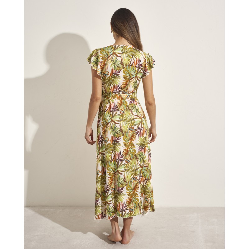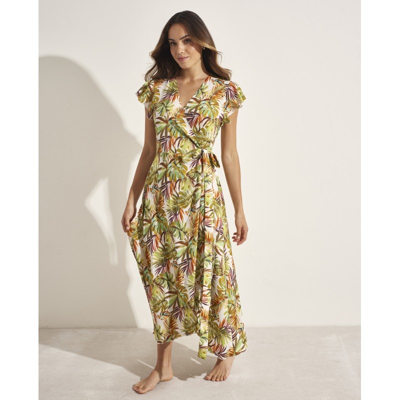 Vestido largo con lazon lateral. Con copa extraíble y tirantes multiposición. Con aro y tirantes ajustables para garantizar una sujeción perfecta. Transpórtate a la aventura tropical con este diseño que te hará sentir viva y llena de enería.
