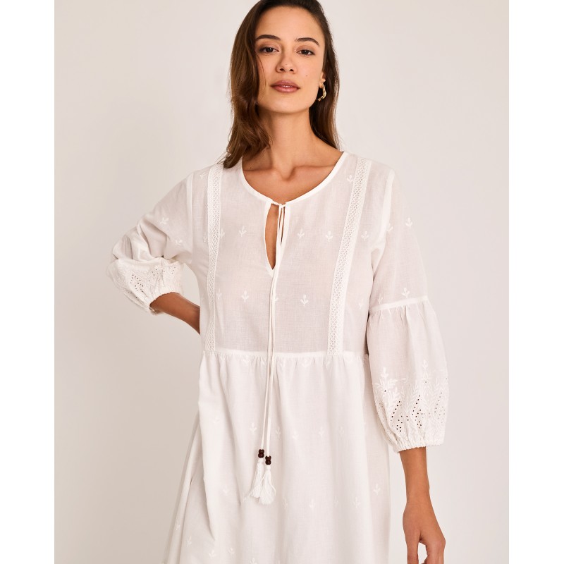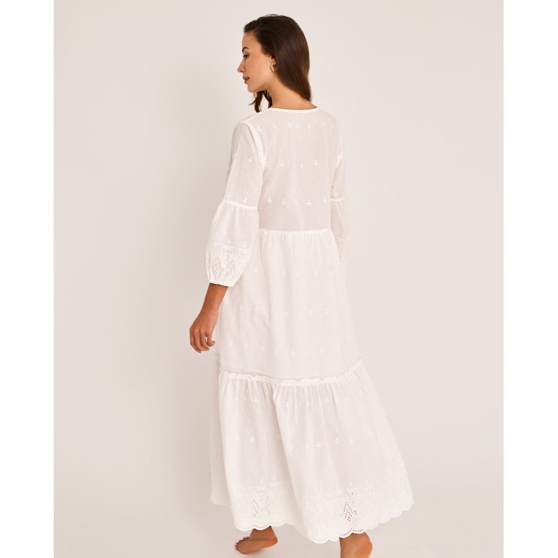 Vestido largo con mangas. Su diseño amplio y su estilo bohemio y chic lo convierten en una prenda muy cómoda y versátil para el día a día. Ideal para esta temporada.
