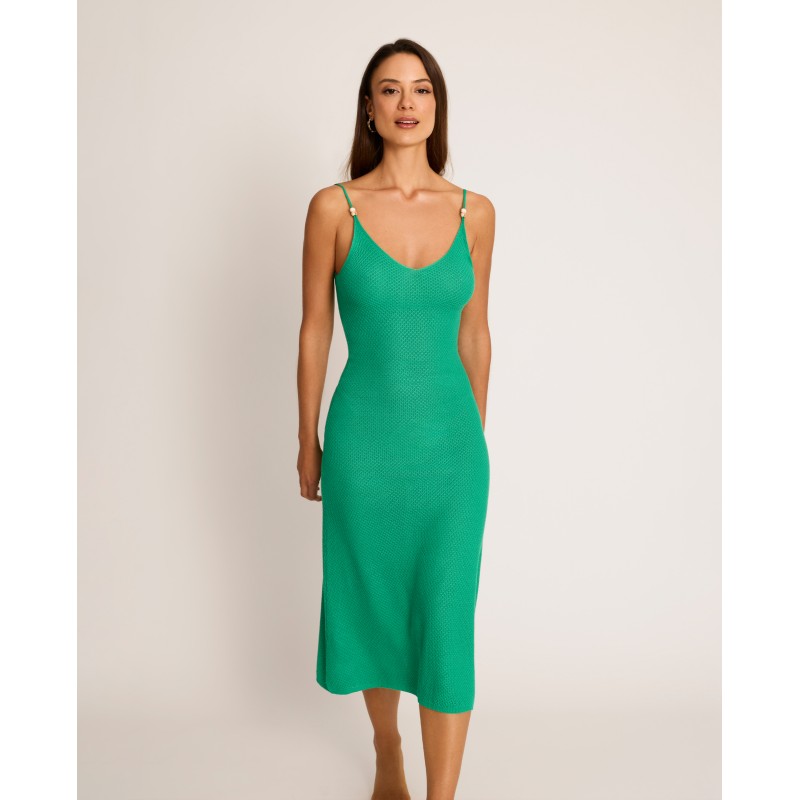 Vestido largo de punto con tirantes finos. Un diseño al cuerpo ideal para destacar la silueta y sentirte espléndida este verano.