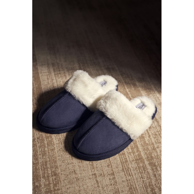 Par de zapatillas destalonadas con suela. Ideal para mantener tus pies cálidos y confortables este invierno.