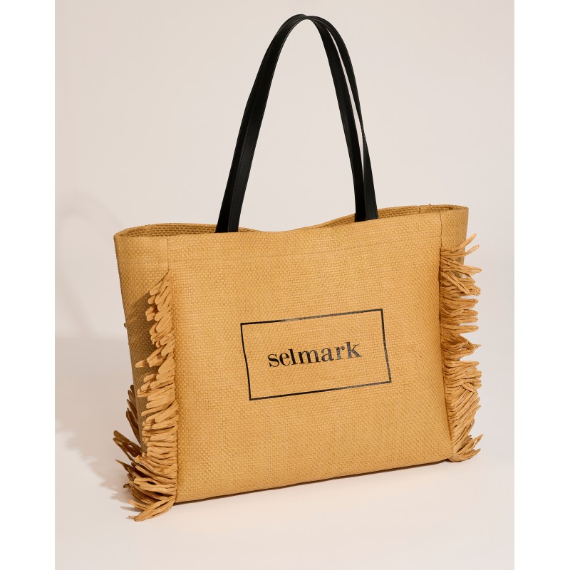 Lightweight designer bag with side fringe that adds a bohemian and modern touch. Its long handles allow for comfortable shoulder carrying. A perfect accessory for casual looks.