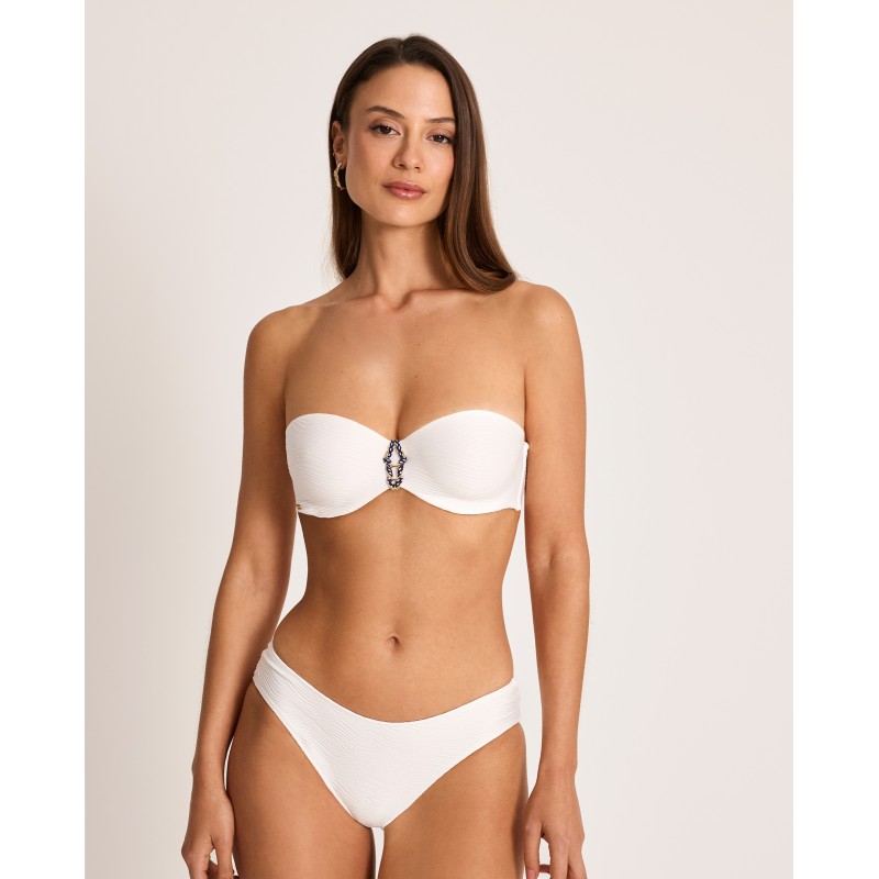 Bandeau bikini top with underwire and cups. With removable straps. Part of a swimwear collection with clean lines and timeless design where simplicity becomes elegance. Designed for women who appreciate understated sophistication.