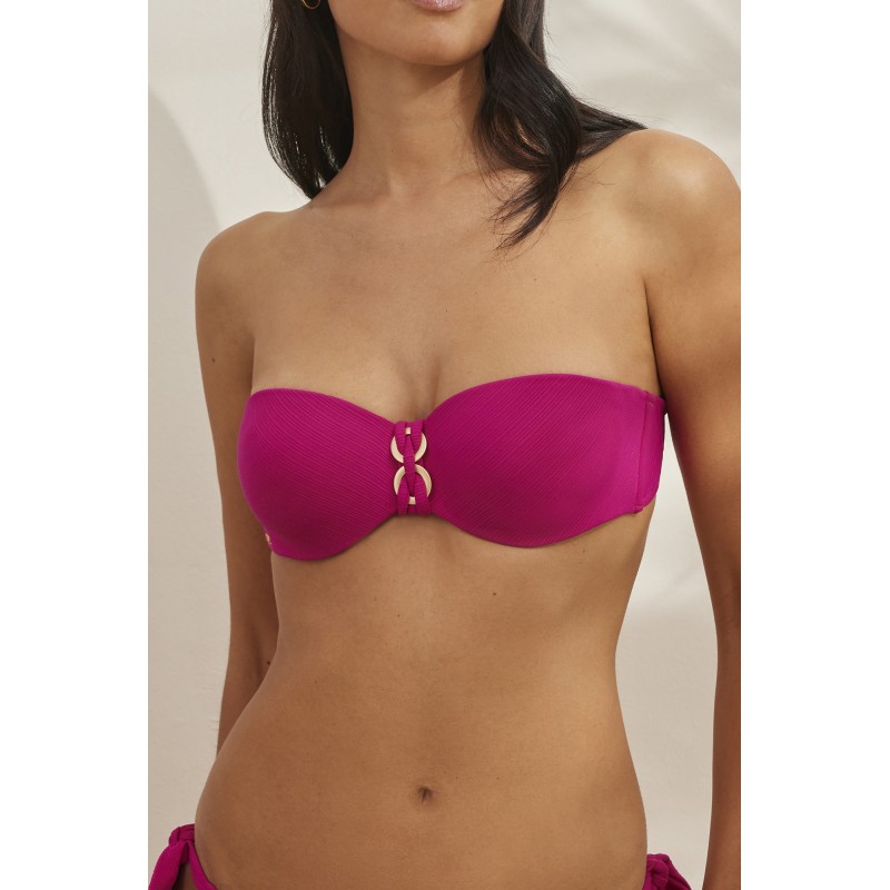 Bandeau bikini top with underwire and cup. With removable straps. A simple and super combinable design, a must this season.