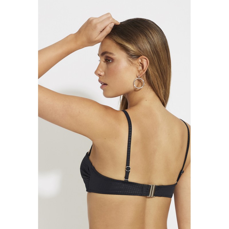 Bandeau bikini top with underwire and cup. With a detail that adds elegance to this piece and makes it an ideal alternative among your swimwear.