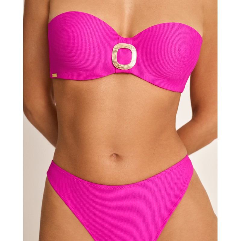 Bandeau bikini top with underwire and cups. With removable straps. Its uniform color and timeless style make it ideal to wear this season.