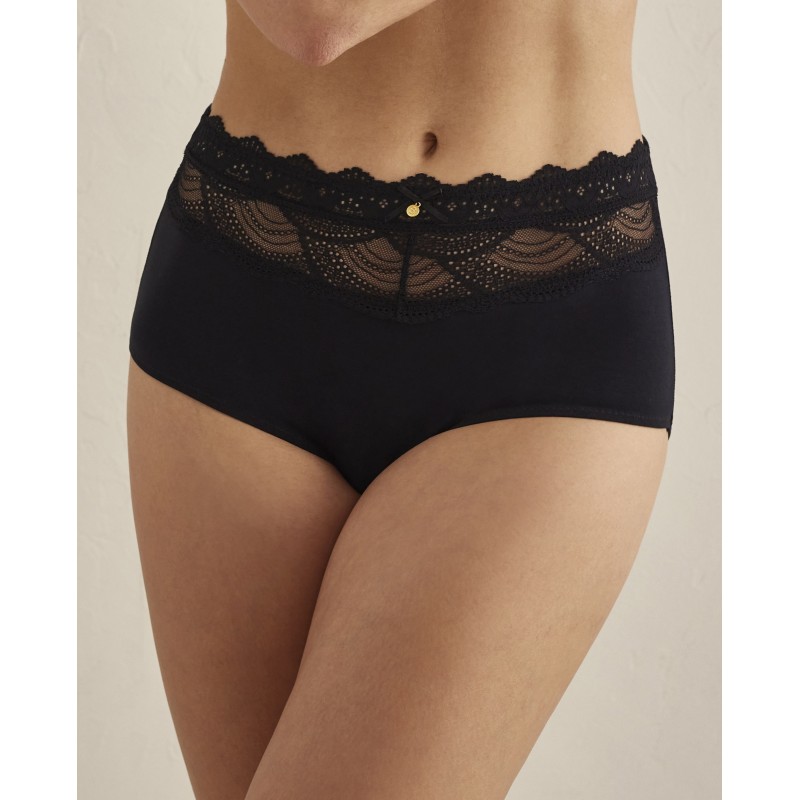 Pack of 2 high-waisted cotton panties combined with lace at the front of the waist. An essential basic for everyday comfort.