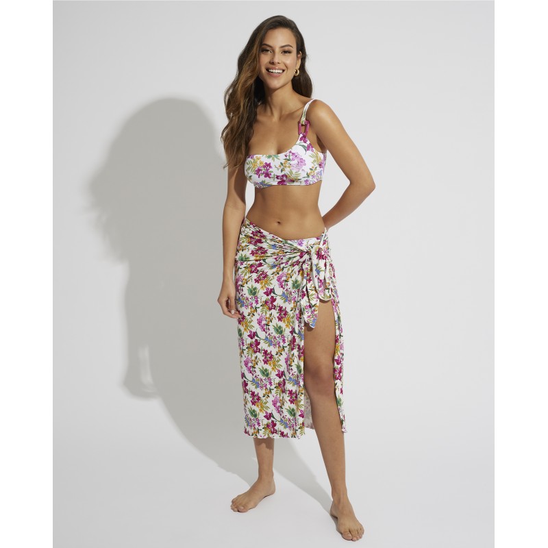 Beach wrap with soft and wide fabric. This floral and colorful design is perfect to wear over your bikini or swimsuit and look radiant and vibrant at the beach or pool this summer.