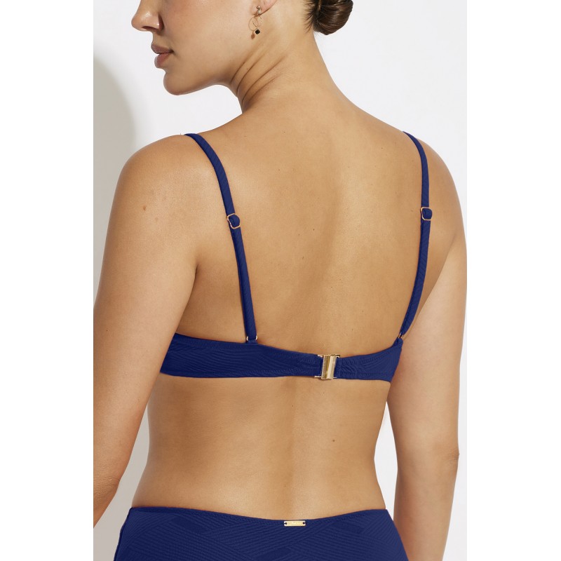 Bikini top without foam. With underwire and adjustable straps to guarantee a perfect fit. Made with recycled fabric, this piece is an excellent alternative among your swimwear this summer.