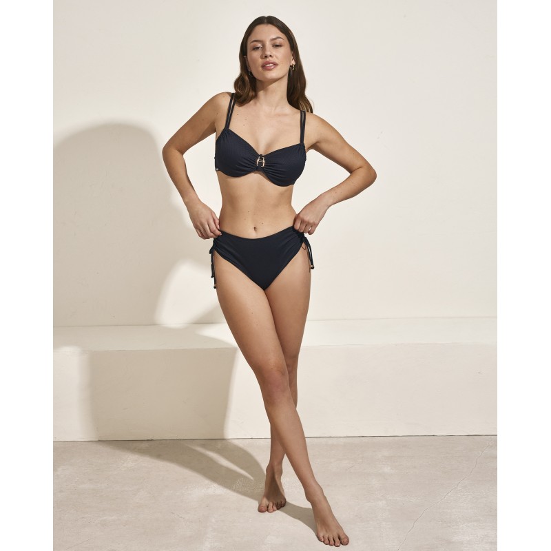 Non-padded, full coverage bikini top. Featuring underwire and coordinated double straps for perfect support. This versatile design is perfect for those who want a garment that suits a variety of occasions and styles. Its comfortable and secure fit allows for carefree water activities, whether at the beach or pool. It is certainly a classic, practical and stylish choice for summer, ideal for looking good while having fun in the sun.