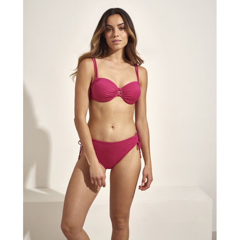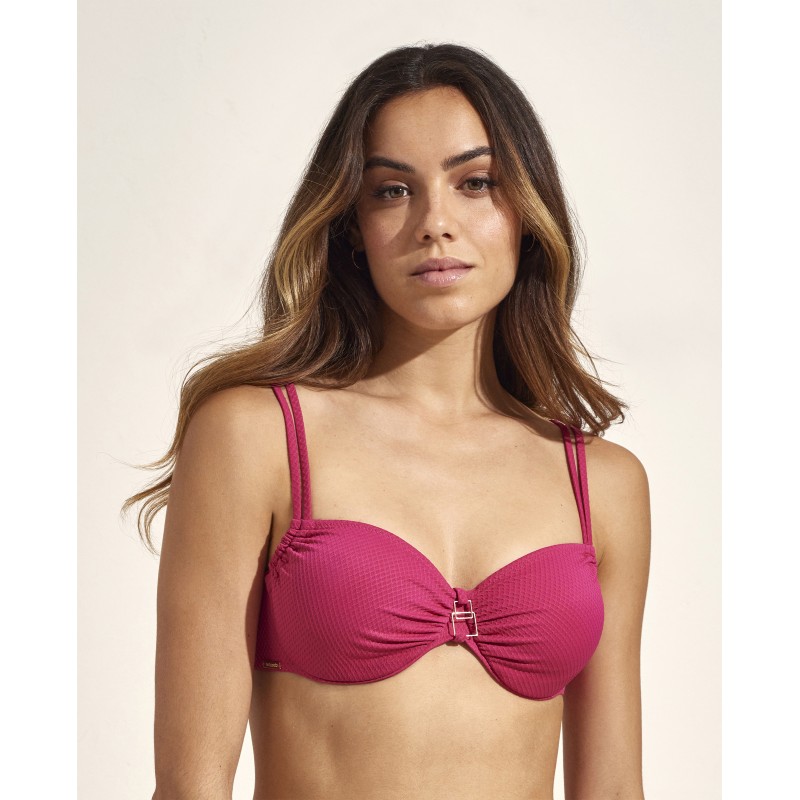 Non-padded, full coverage bikini top. Featuring underwire and coordinated double straps for perfect support. This versatile design is perfect for those who want a garment that suits a variety of occasions and styles. Its comfortable and secure fit allows for carefree water activities, whether at the beach or pool. It is certainly a classic, practical and stylish choice for summer, ideal for looking good while having fun in the sun.