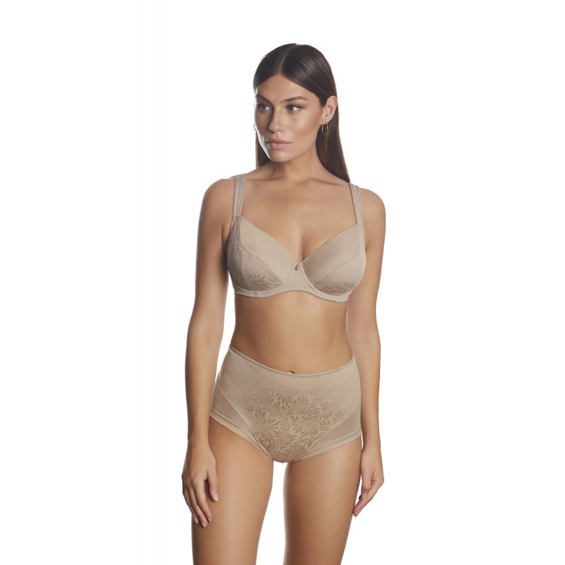 Big size bra with elegant aesthetic thanks to the combination of gloss-matte fabrics. It rounds the chest, in addition to guaranteeing extra support for the width of its back. The straps are padded providing a plus of comfort.