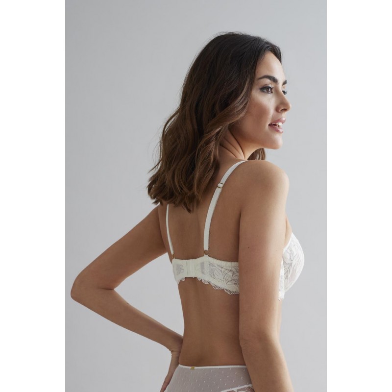 Medium neckline big size bra. Surround control effect. Ideal for larger sizes. Very attractive aesthetics and with character. Its floral lace makes it a very current and youthful design.
