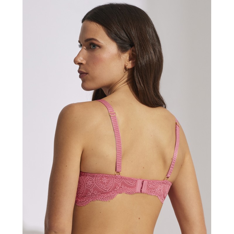 Medium neckline capacity bra. Surround control effect. Ideal for larger sizes. Its spectacular lace design gives it a romantic and bohemian style at the same time. This garment combines sensuality, freshness and elegance, ideal for free and authentic women.