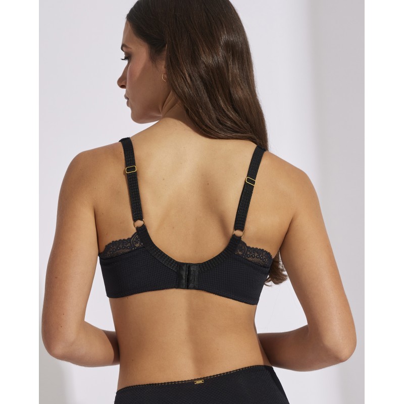 High-neckline large capacity bra. Surround control effect without padding. Ideal for larger sizes. Its spectacular lace design gives it a romantic and bohemian style at the same time. This garment combines sensuality, freshness and elegance, ideal for free and authentic women.
