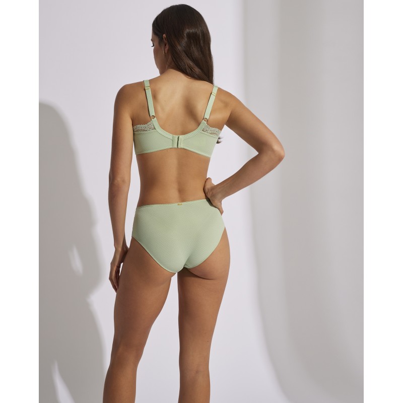 High-neckline large capacity bra. Surround control effect without padding. Ideal for larger sizes. Its spectacular lace design gives it a romantic and bohemian style at the same time. This garment combines sensuality, freshness and elegance, ideal for free and authentic women.