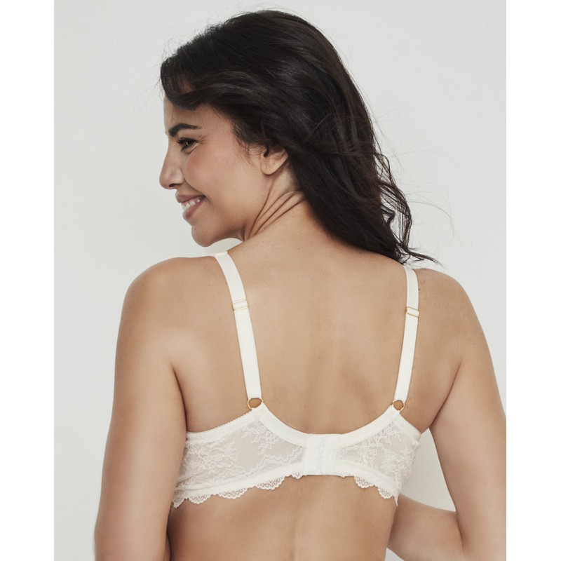 Big size bra. Wrap-around control effect. Features underwire, a base band, and side boning. No foam cups. Ideal for larger sizes. Includes an external wedge that supports and centers the bust. The back is lined with control tulle and the straps and hook-and-eye closure are adjustable to fit different sizes for comfort and optimal support. A piece that blends elegance and comfort, designed for real, free, and confident women. Part of the Manuela collection, designed to enhance inner beauty and celebrate the authenticity of every woman. For those who want to feel not only beautiful, but also comfortable and confident in their own skin.