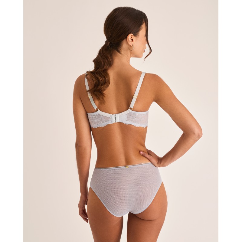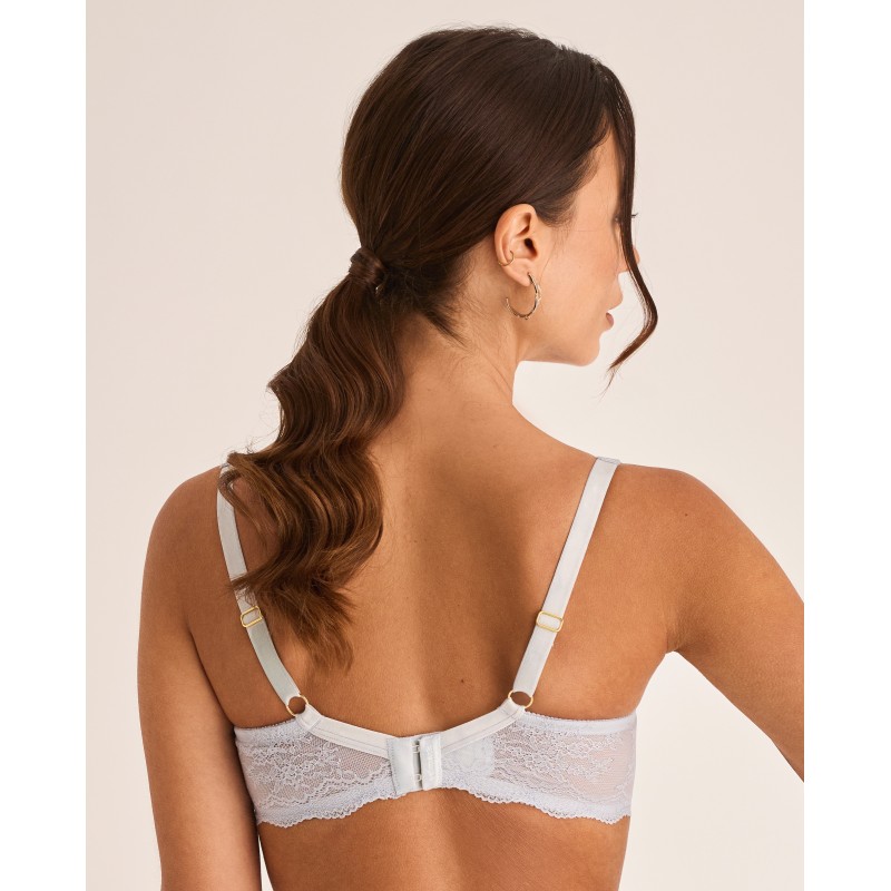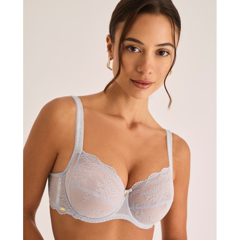 Big size bra. Wrap-around control effect. Features underwire, a base band, and side boning. No foam cups. Ideal for larger sizes. Includes an external wedge that supports and centers the bust. The back is lined with control tulle and the straps and hook-and-eye closure are adjustable to fit different sizes for comfort and optimal support. A piece that blends elegance and comfort, designed for real, free, and confident women. Part of the Manuela collection, designed to enhance inner beauty and celebrate the authenticity of every woman. For those who want to feel not only beautiful, but also comfortable and confident in their own skin.