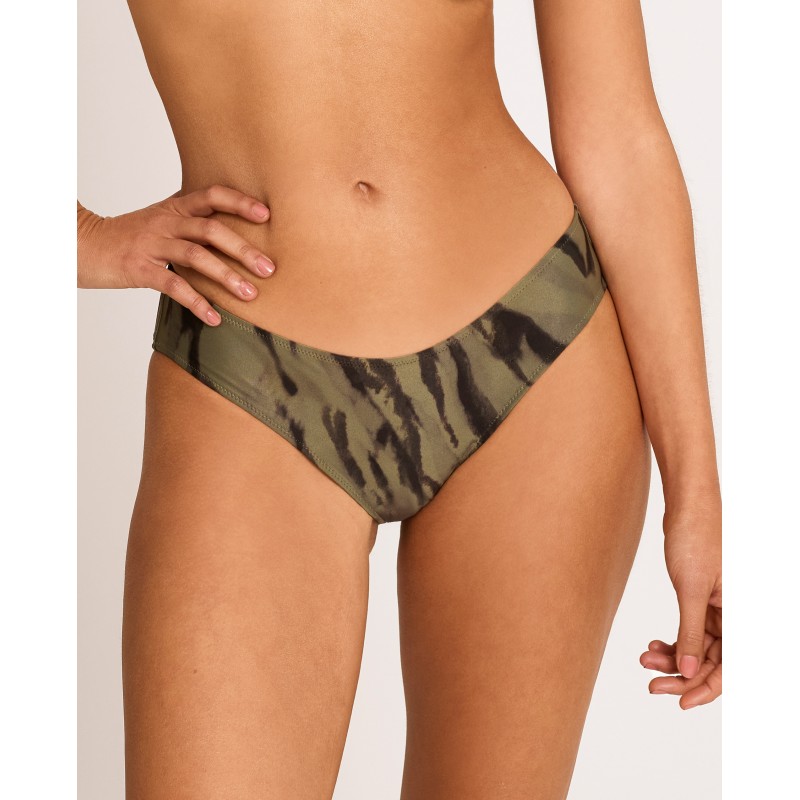 Classic-cut bikini bottoms. Their wild-inspired design connects us with our natural instincts and the inner strength of a confident and sensual femininity. This piece is made from recycled raw materials.
