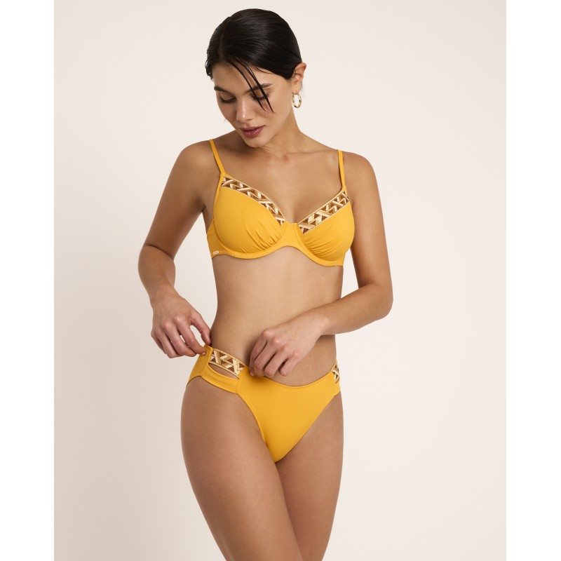 Classic cut bikini bottoms. A piece defined by the purity of its solid color, elevated by geometric details that add character and uniqueness.