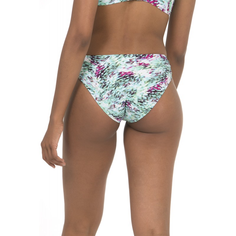 Classic bikini bottom. Elegant and classic style. Feather print. Khaki green.