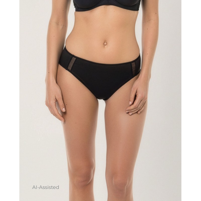 Unpatterned bikini panty. With transparencies and a comfortable and light design. Does not mark seams and guarantees maximum support. Black.