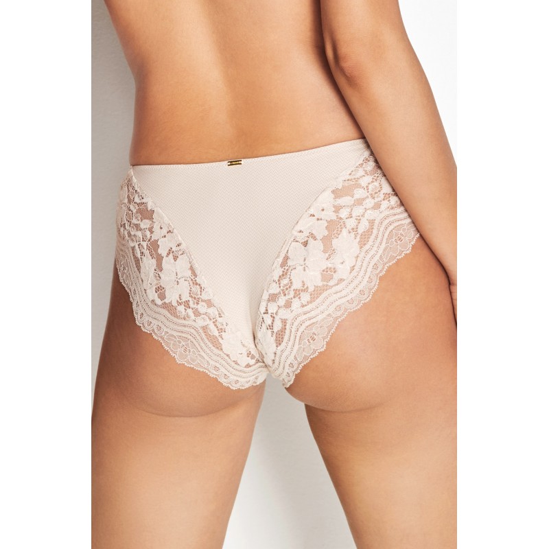Bikini cut briefs with a romantic and rustic aesthetic. Its lace details make it a piece with a unique, attractive and feminine design.
