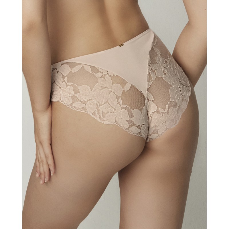 Classic cut bikini bottom with floral lace combined with piqué that continues from the front to the back, which provides softness creating clean lines and exquisite details. The elastic band on his waist doesn't mark. A sophisticated piece of lingerie in which elegance and comfort go hand in hand. The Federica collection, to which it belongs, is characterized by shapes and structures worked with precision toenhance the contours of every woman and empower her confidence, celebrating individuality and femininity at its finest.