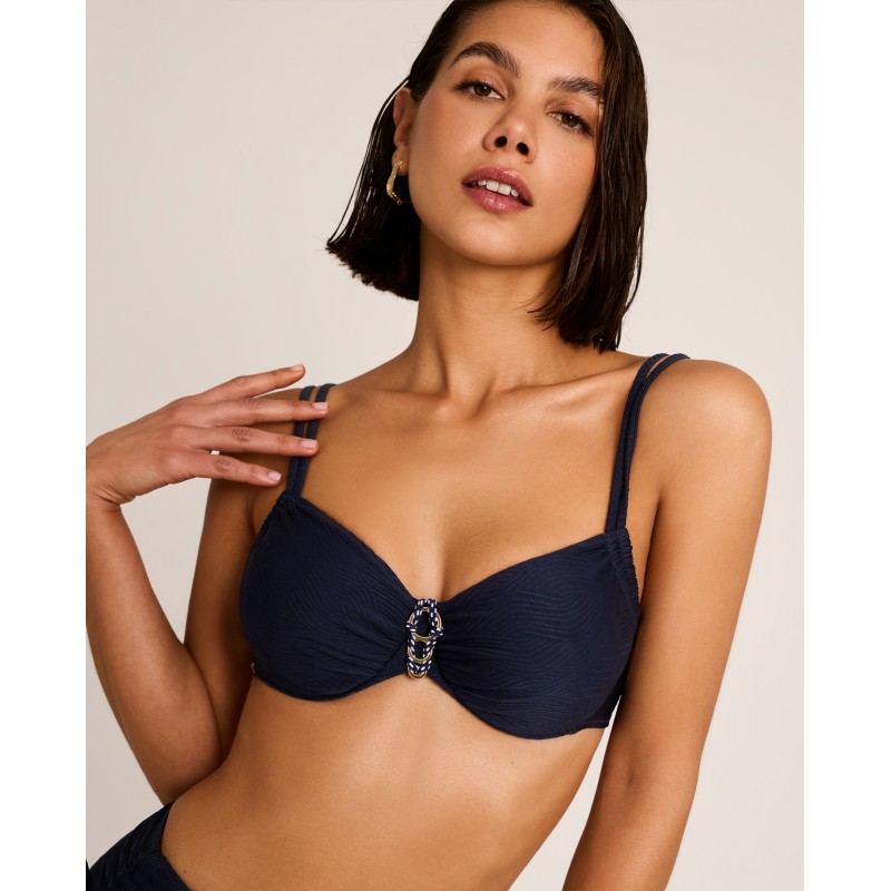 Full-coverage bikini top, unpadded. Features underwire and double straps for perfect support. Part of a swimwear collection with clean lines and timeless design where simplicity becomes elegance. Designed for women who appreciate understated sophistication.