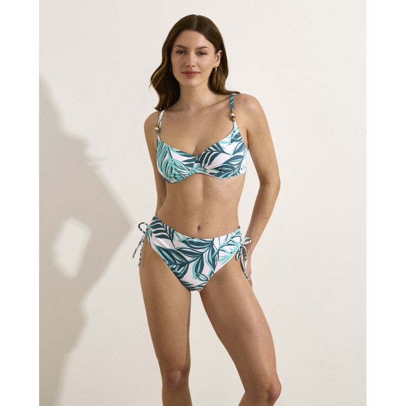 Non-padded, padded bikini top with underwire and adjustable straps to ensure perfect support. Featuring a lively design that captures the essence of summer thanks to the leaf print that highlights the beauty of tropical nature.