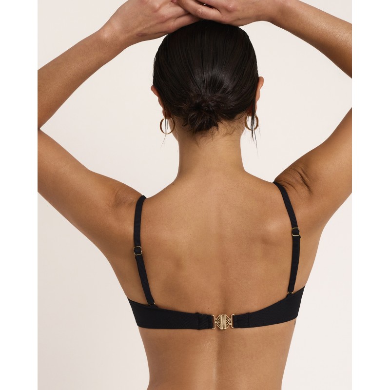 Full-coverage bikini top without padding. Features underwire and adjustable straps for a perfect fit. Its uniform color and timeless style make it ideal for showing off this season.