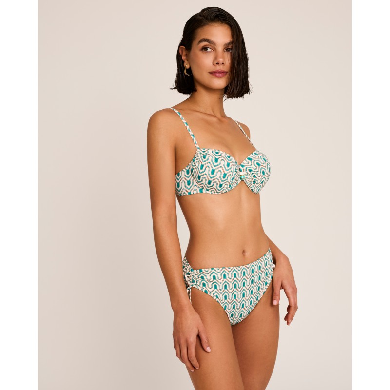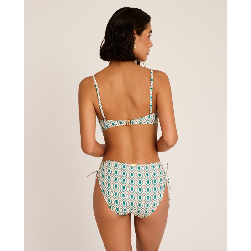 Full-coverage bikini top, unpadded. Features underwire and adjustable straps for a perfect fit. The geometric print adds dynamism and a summery feel. A contemporary and sophisticated option for this season. Made from recycled materials.