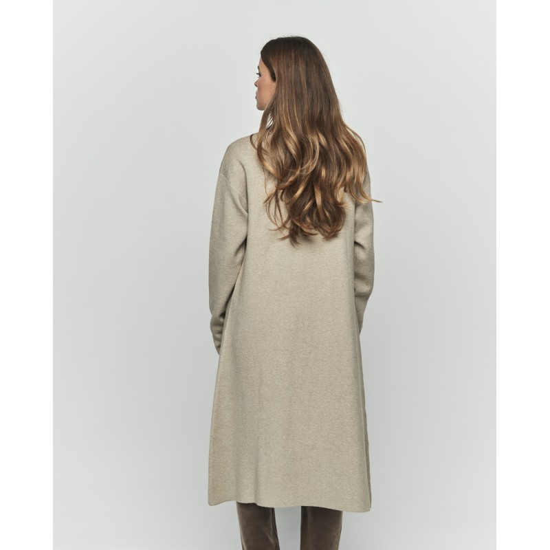 Women's long jacket. Its shiny pockets give it an elegant and chic touch that makes all the difference.